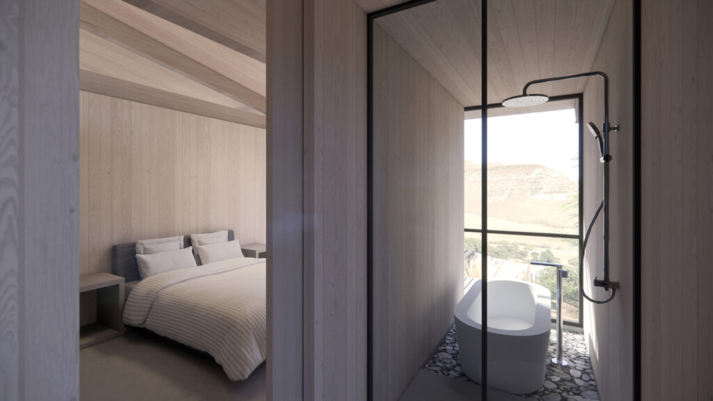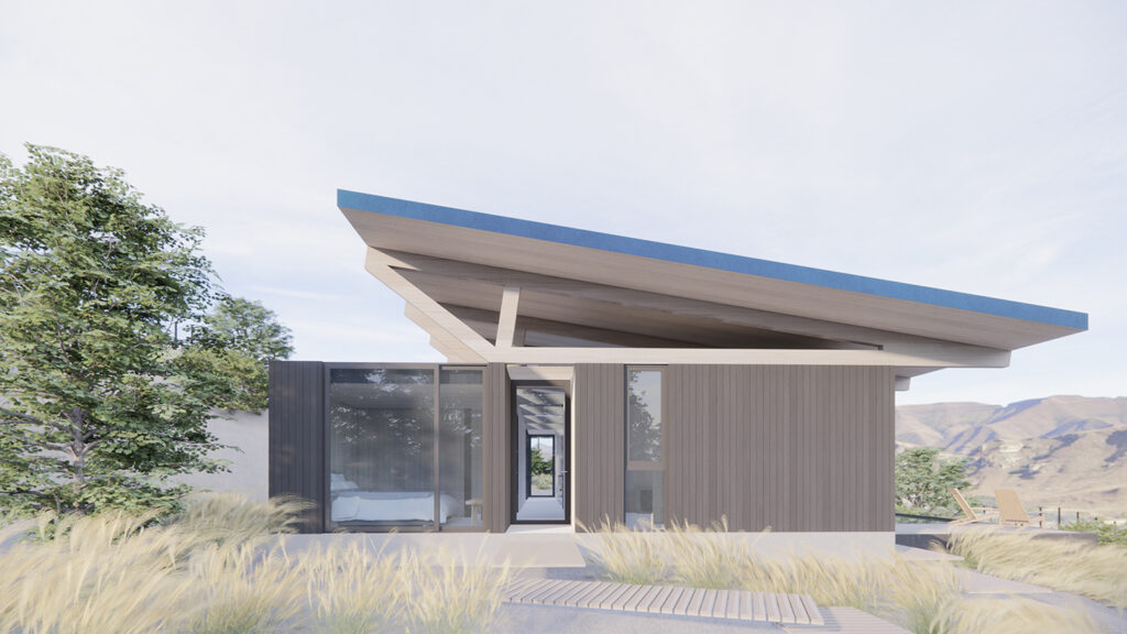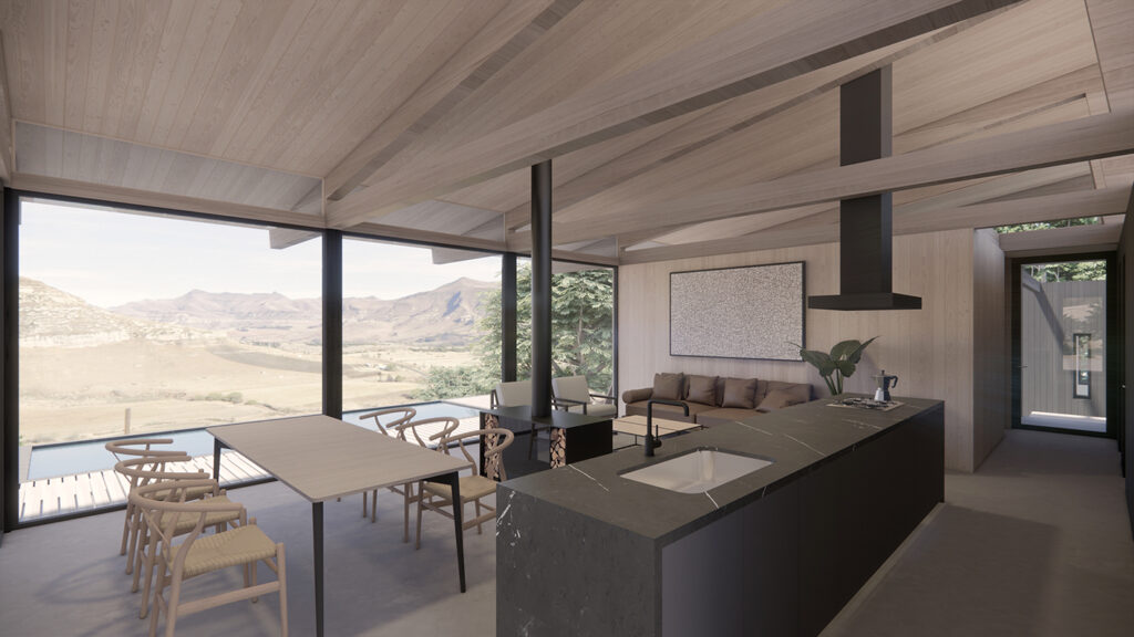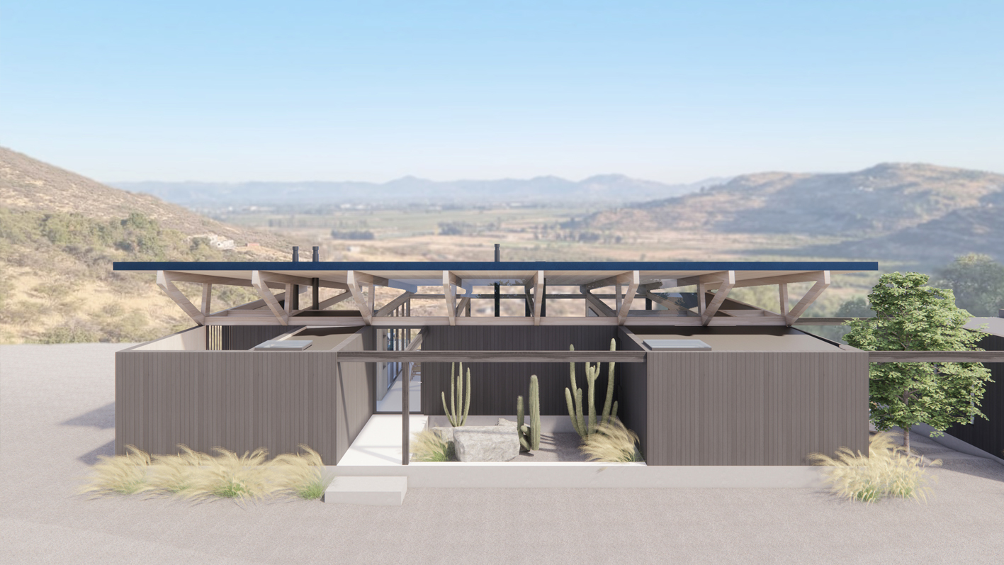 Esta cubierta corresponde a los espacios públicos de la casa y a los de mayor interés, como lo es un quincho, el cual queda naturalmente ventilado, el living comedor cocina, con una vista panorámica al valle, y el dormitorio principal y su baño.